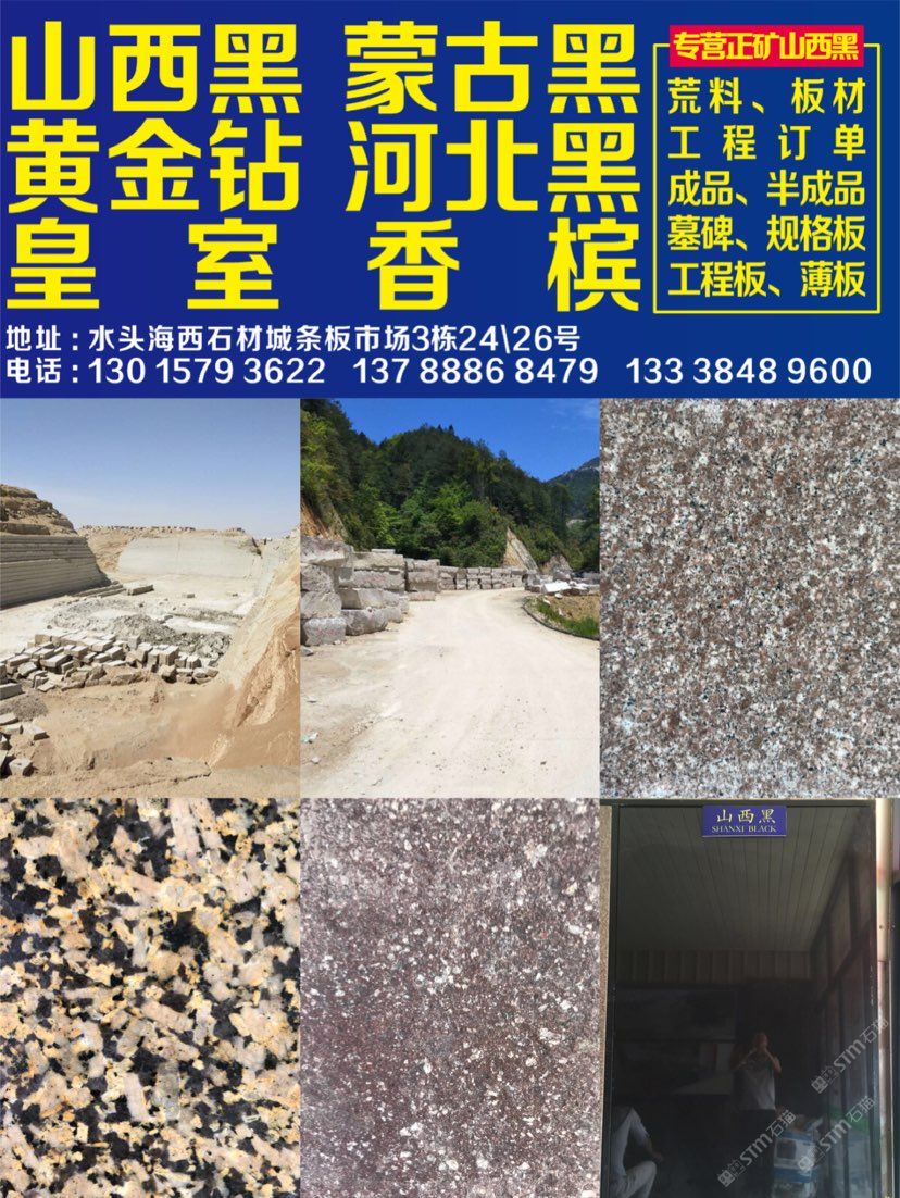 本公司主要經營 皇室香檳 黃金鉆/金鉆麻 山西黑 河北黑 壽寧紅/雞血紅 國產皇室啡 荒料 板材 工程訂單 園林景觀訂單 碑石半成品 成品