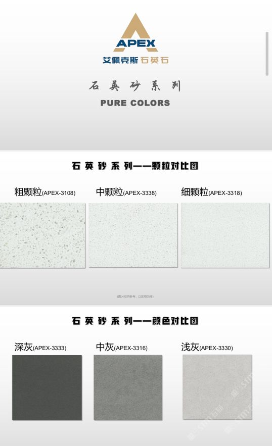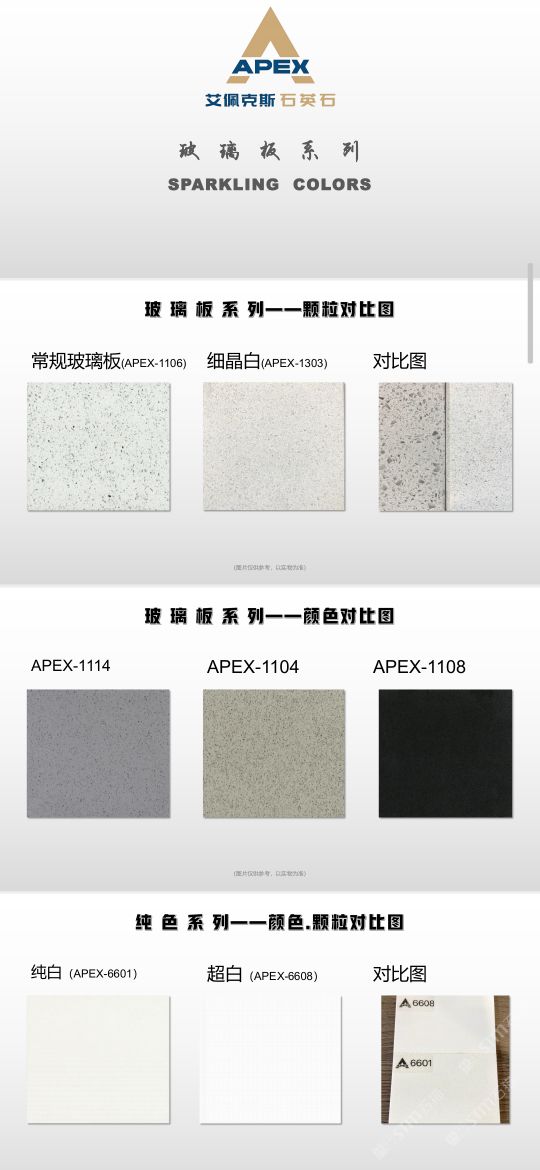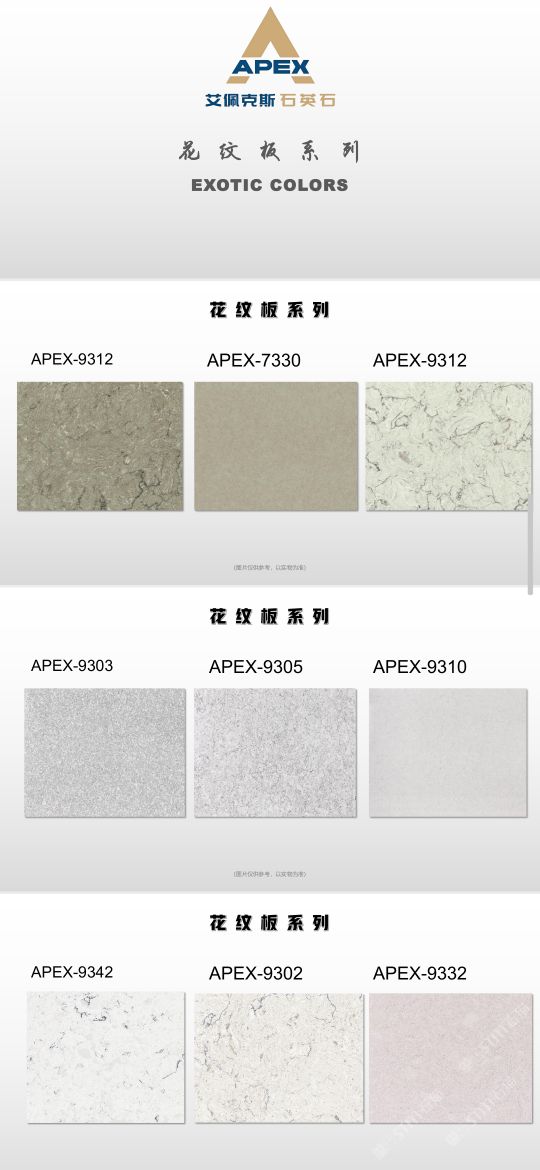 艾佩克斯秉承“精益求精”的開發(fā)理念,在人造石生產(chǎn)工藝上大膽突破,研發(fā)出更具特色的新石代石英石,色彩自然豐富,具有天然石材的質(zhì)感和美麗的表面光澤。產(chǎn)品具有刮不花、不污染、用不舊、燃不著、無輻射等五大特點,可以廣泛用于公共建筑酒店、餐廳、銀行、醫(yī)院、展覽館、實驗室等和家庭裝修廚房臺面、洗臉臺、廚衛(wèi)墻面、餐桌、茶幾、窗臺、門套等領(lǐng)域,是一種無放射污染、可重復(fù)利用環(huán)保、綠色新型建筑室內(nèi)裝飾材料。是的裝飾裝修材料。