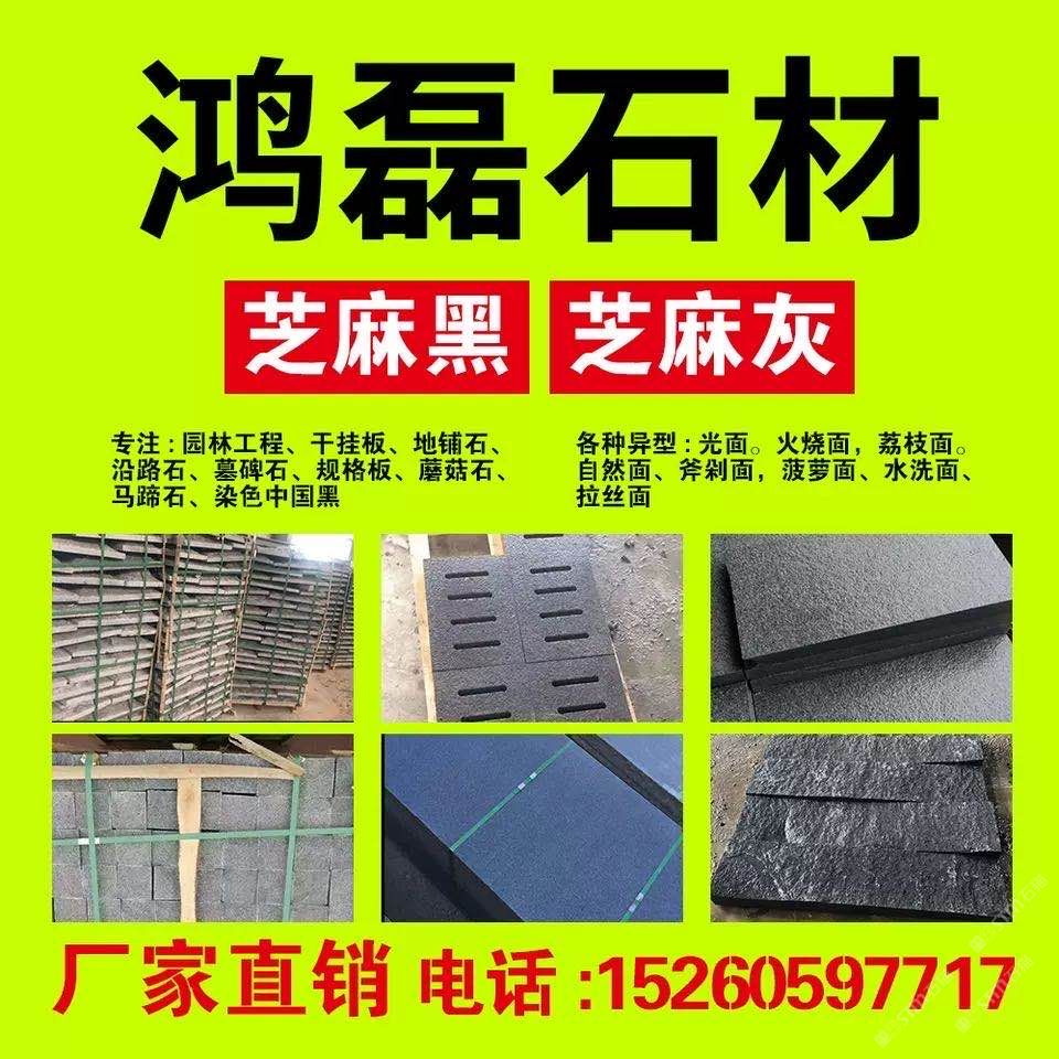 專業(yè)新老礦芝麻黑,芝麻灰供應(yīng)商,實力工廠,超低價批發(fā),主營:老礦芝麻黑,新礦芝麻黑,福建芝麻灰,等石材,光面墓碑石厚薄板等碑石加工。承接路沿石,地鋪石,馬蹄石,自然面背景墻,盲道石,廣場石等市政園林景觀工程,歡迎您來電溝通洽談業(yè)務(wù).15260597717