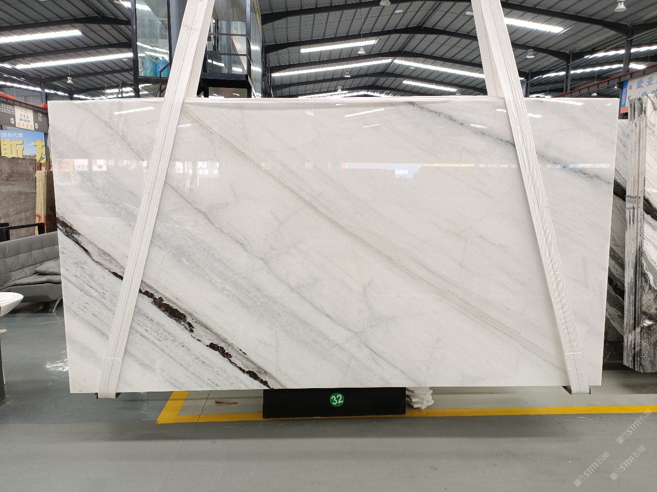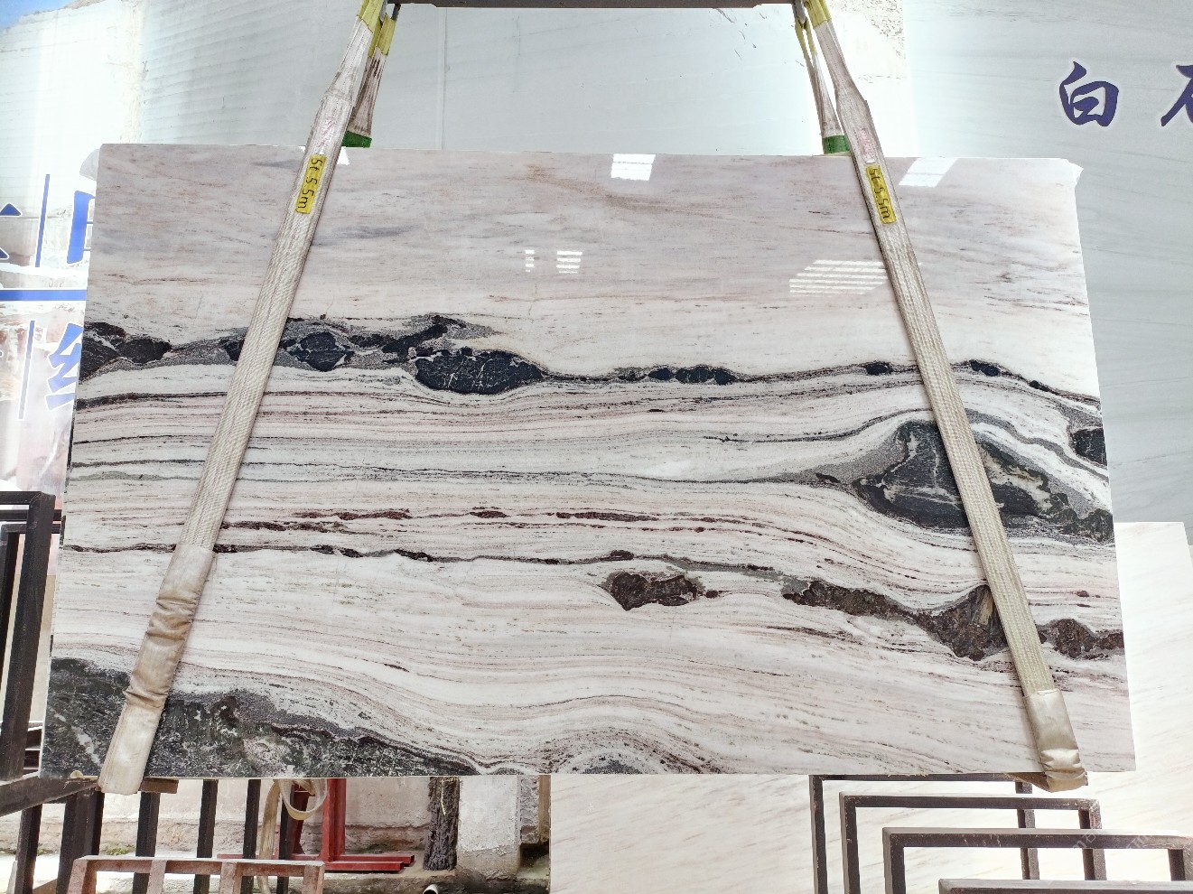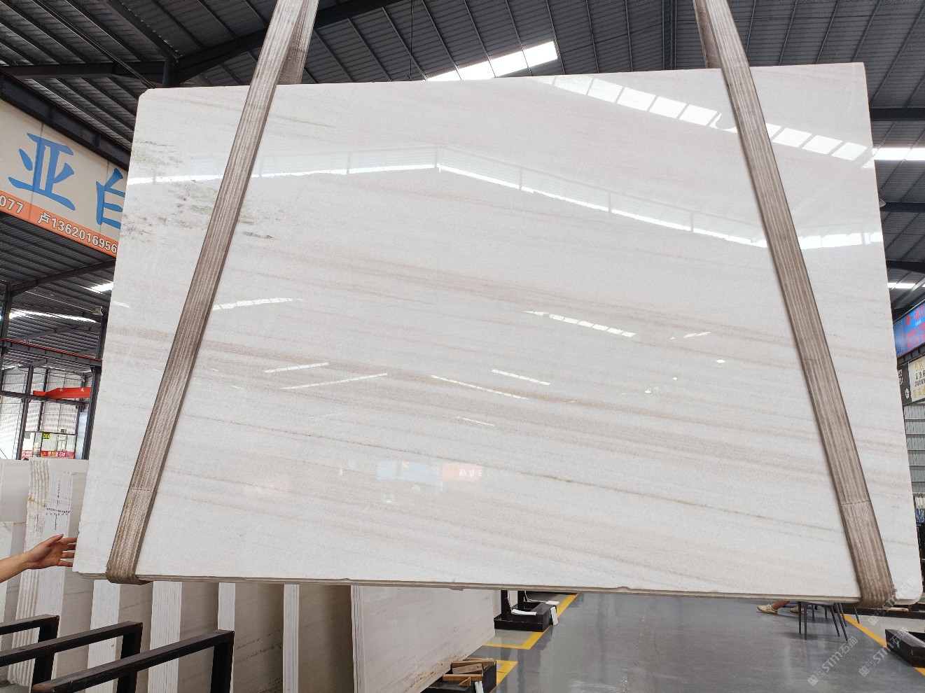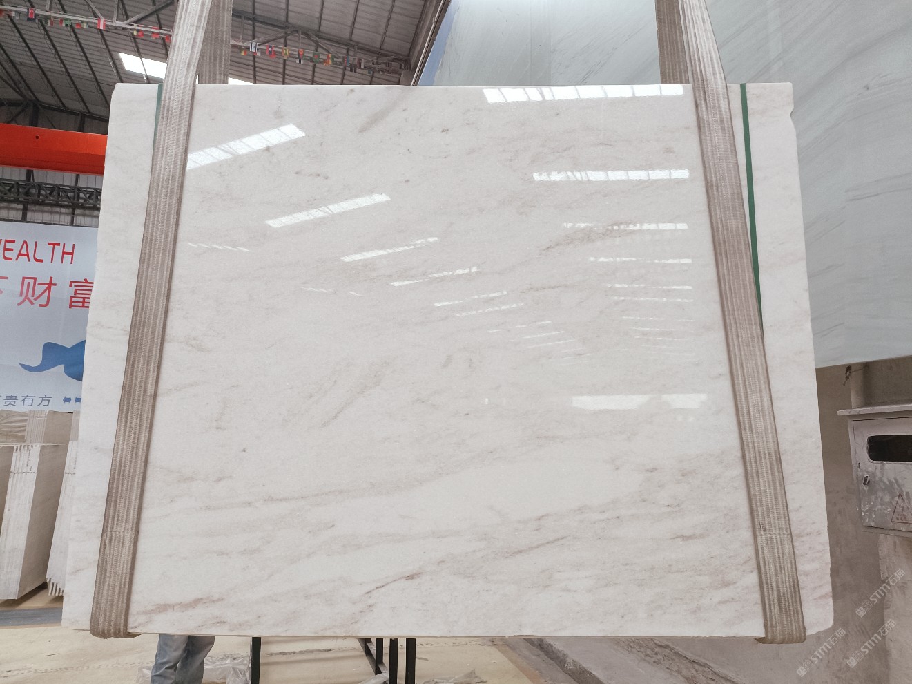 云浮站石材公司開發(fā)的歐亞白獨(dú)立礦山,專屬道路,礦口面積約 725 畝,證件齊全。今年礦口開采出直紋,亂紋優(yōu)質(zhì)大板材料,礦山采用單面墻平臺(tái)開采方式,10臺(tái)繩鋸、5臺(tái)鏟車、5臺(tái)勾機(jī)、一臺(tái) 30 噸叉車,共有職工40人,已有兩個(gè)開采平臺(tái)。礦山已開采多年,道路、設(shè)施都已成熟,現(xiàn)產(chǎn)能穩(wěn)定增長(zhǎng)。品質(zhì)非常穩(wěn)定,一石兩面分別可以產(chǎn)出直紋和亂紋兩種紋路,材質(zhì)為細(xì)膩的玉質(zhì)品體。