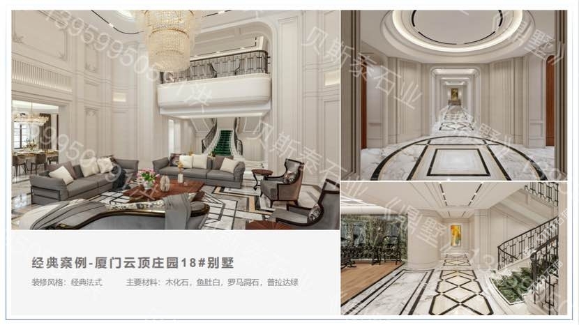 經(jīng)營(yíng)范圍:主營(yíng)品種,老礦莎安娜,魚(yú)肚白,雪花白,自有工廠,200多號(hào)精英團(tuán)隊(duì),企業(yè)2006成立至今,累計(jì)上千套別墅大宅石材銷售,加工生產(chǎn),整案落地經(jīng)驗(yàn)。全國(guó)別墅大宅石材整案落地合作,品牌區(qū)域授權(quán)加盟合作。傳世大宅鼎墅造!