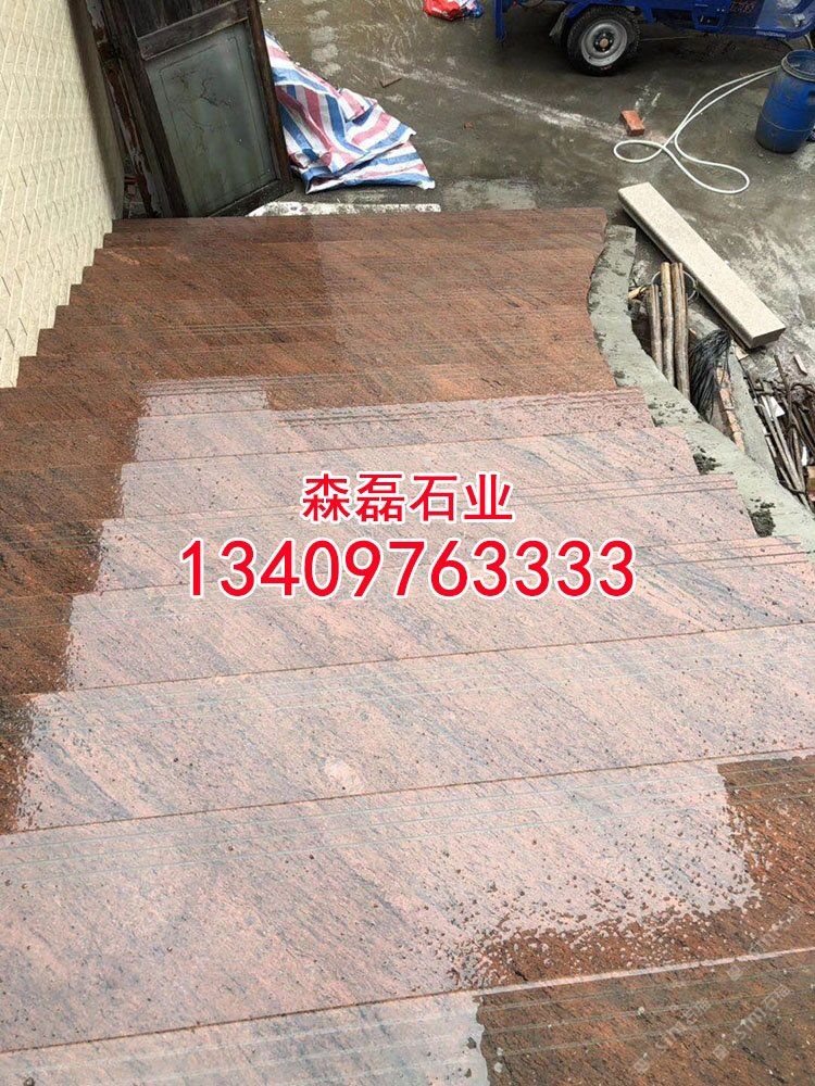 幻彩紅磨光板天然花崗巖大理石樓梯石臺階石樓梯踏步板