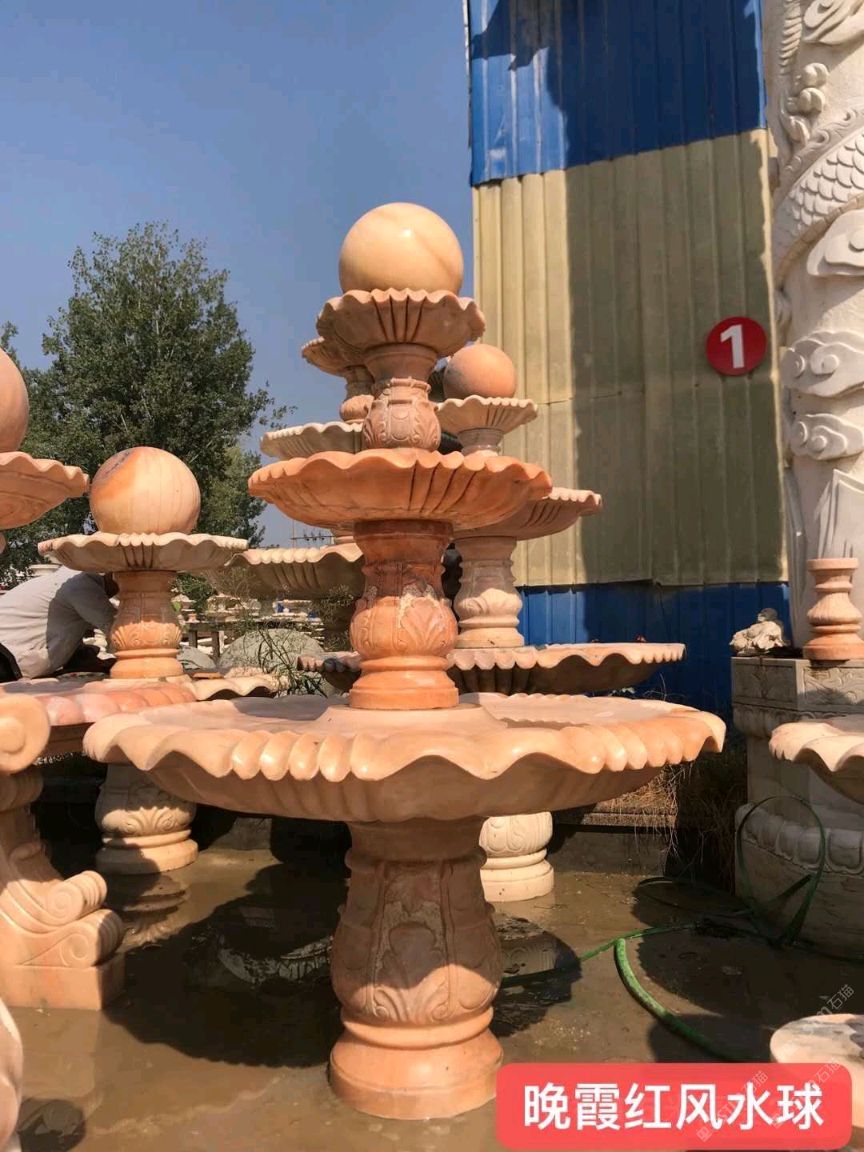 曲陽雕塑廠家制作晚霞紅噴泉 庭院公園風水球擺件