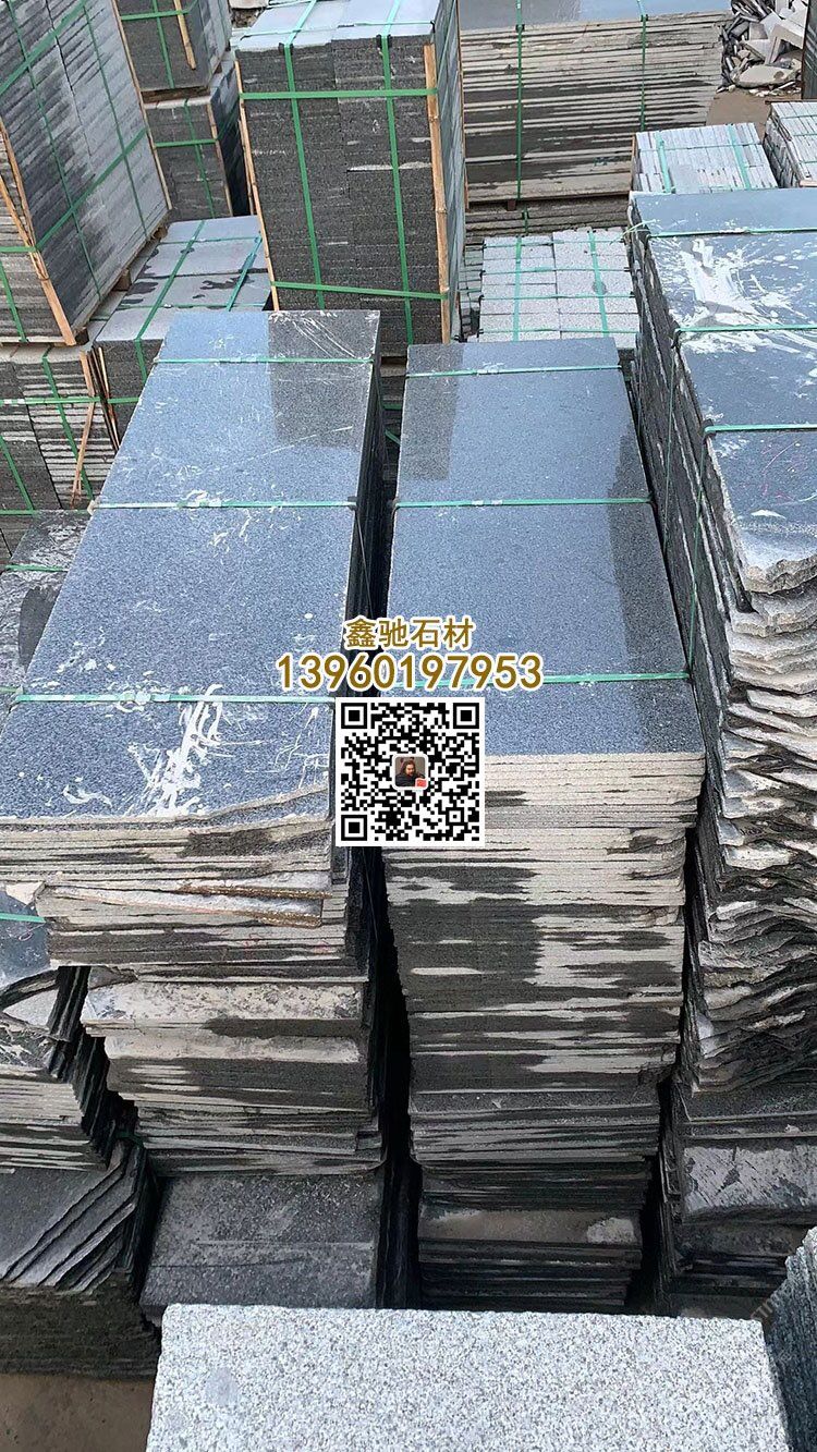 鐘山青荔枝板火燒板光板新礦芝麻黑燒面新g654石材