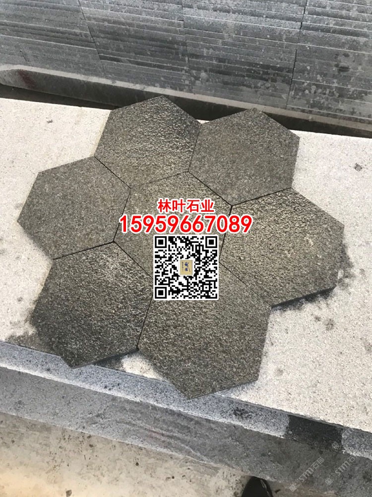 g654荔枝面六棱磚護坡磚芝麻黑實心六角磚鋪路地磚