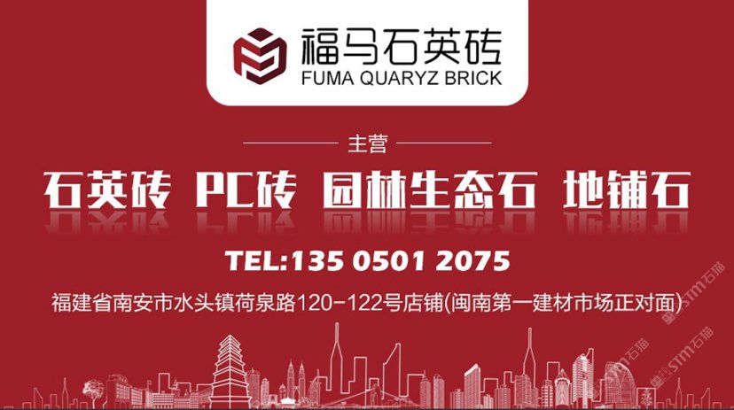 福馬石英磚 聯(lián)系人:蔡    135****2075 查看 手機(jī)號碼:無 主營范圍: 環(huán)境石材、人造石加工、其他、石材外貿(mào)、 企業(yè)地址:福建泉州南安市水頭鎮(zhèn)荷泉路120-122號