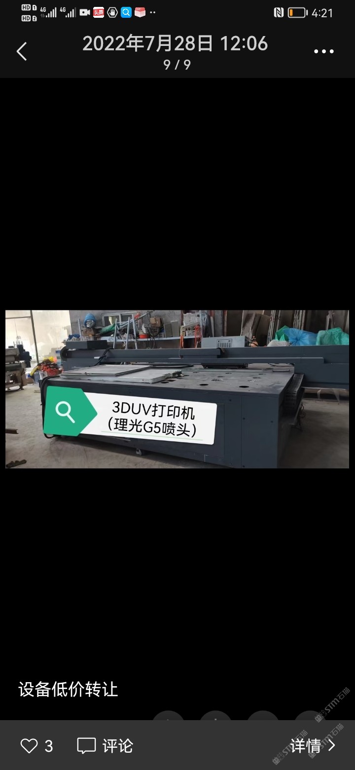 發(fā)布信息: 大理石過渡架15臺(tái),180度翻板機(jī),五燈固化機(jī),雙滾滾涂機(jī),單燈固化機(jī),22千瓦除塵柜,3dUV打印機(jī)