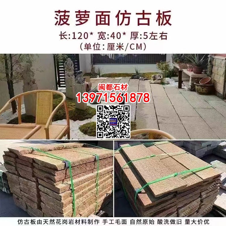 仿古地鋪石條芝麻灰芝麻白天然花崗巖材料酸洗做舊手工