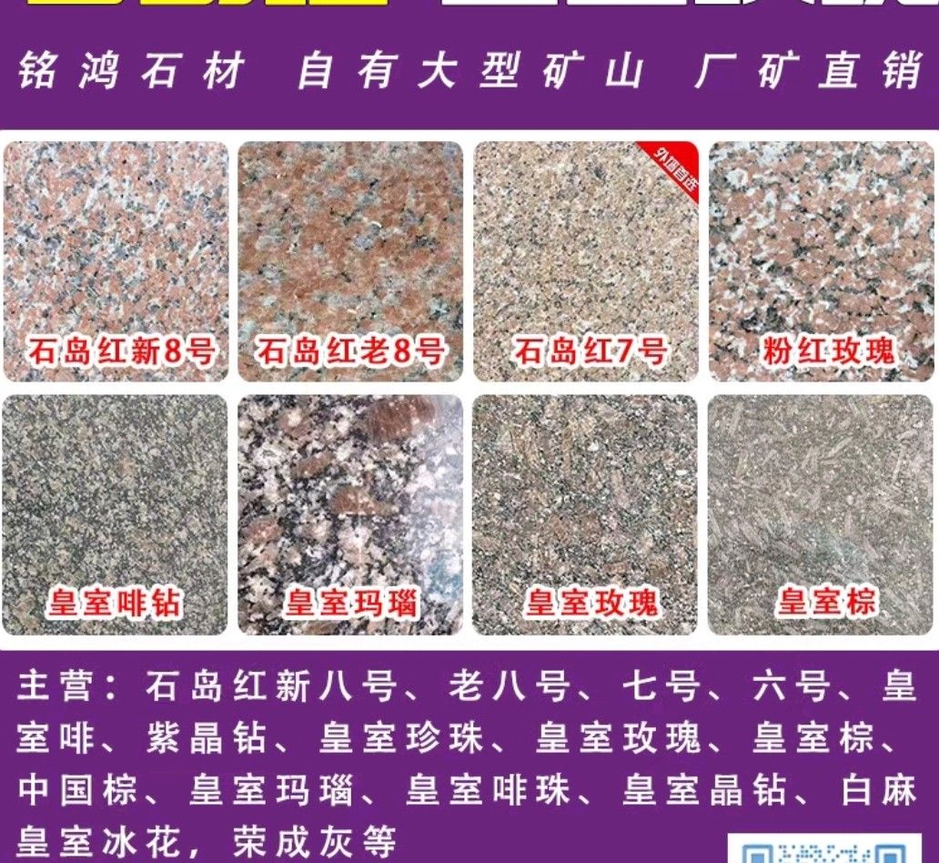 發(fā)布信息: 榮成市人和鎮(zhèn)銘鴻石材 主營 石島紅新八號、老八號、七號、六號 皇室啡、紫晶鉆、皇室珍珠、 皇室玫瑰、皇室棕、中國棕、 皇室瑪瑙、皇室啡珠、皇室晶鉆、白麻,皇室冰花,榮成灰,等 歡迎新老客戶來考察與下 訂單 電話:15063142888 地址:山東省榮成市人和鎮(zhèn)