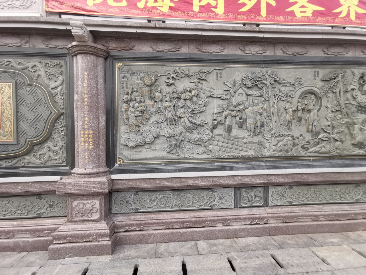 石雕文化柱,照壁,九龍壁荔枝面,光面,燒面