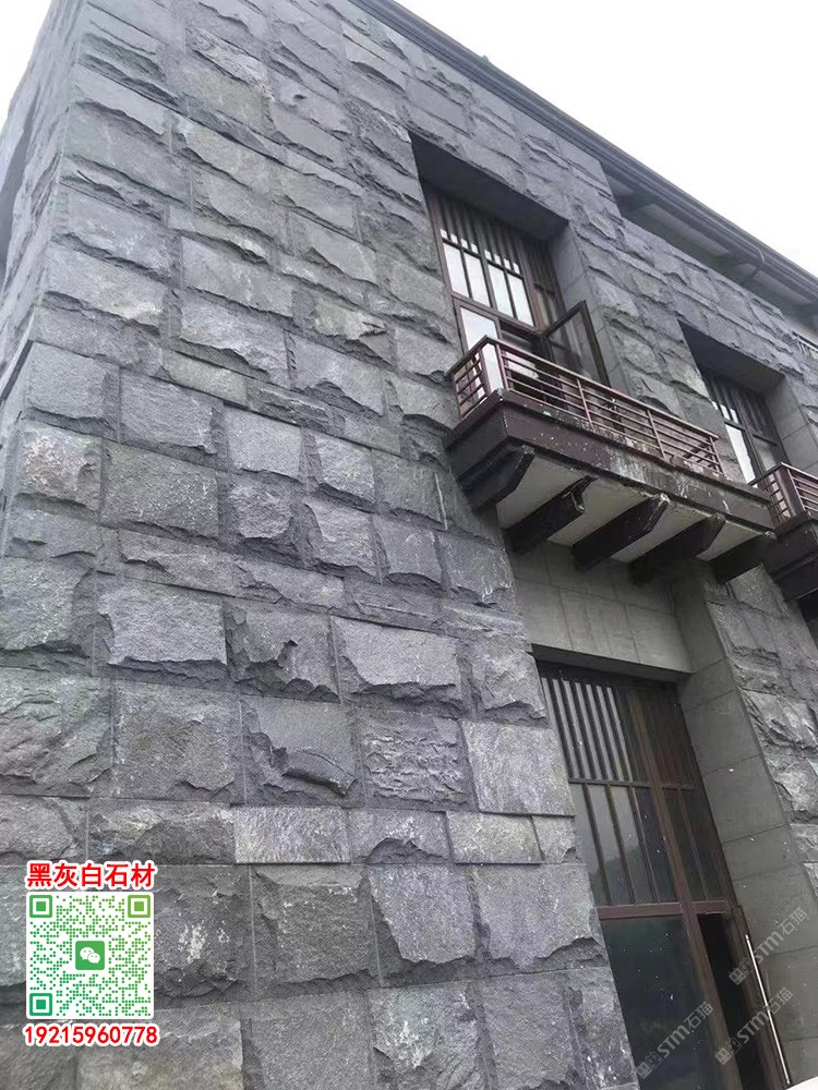 福建芝麻黑自然面背景墻蘑菇石長泰654石材外墻干掛
