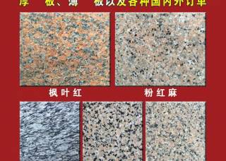 南豐石材主營(yíng)產(chǎn)品:楓葉紅,粉紅麻2,三寶紅,海浪花(浪花白),西麗紅(G498)企業(yè)地址:福建泉州水頭鎮(zhèn)海西石材城花崗巖區(qū)15棟1-5;廣西岑溪市歸義鎮(zhèn)丁蘭開發(fā)區(qū)